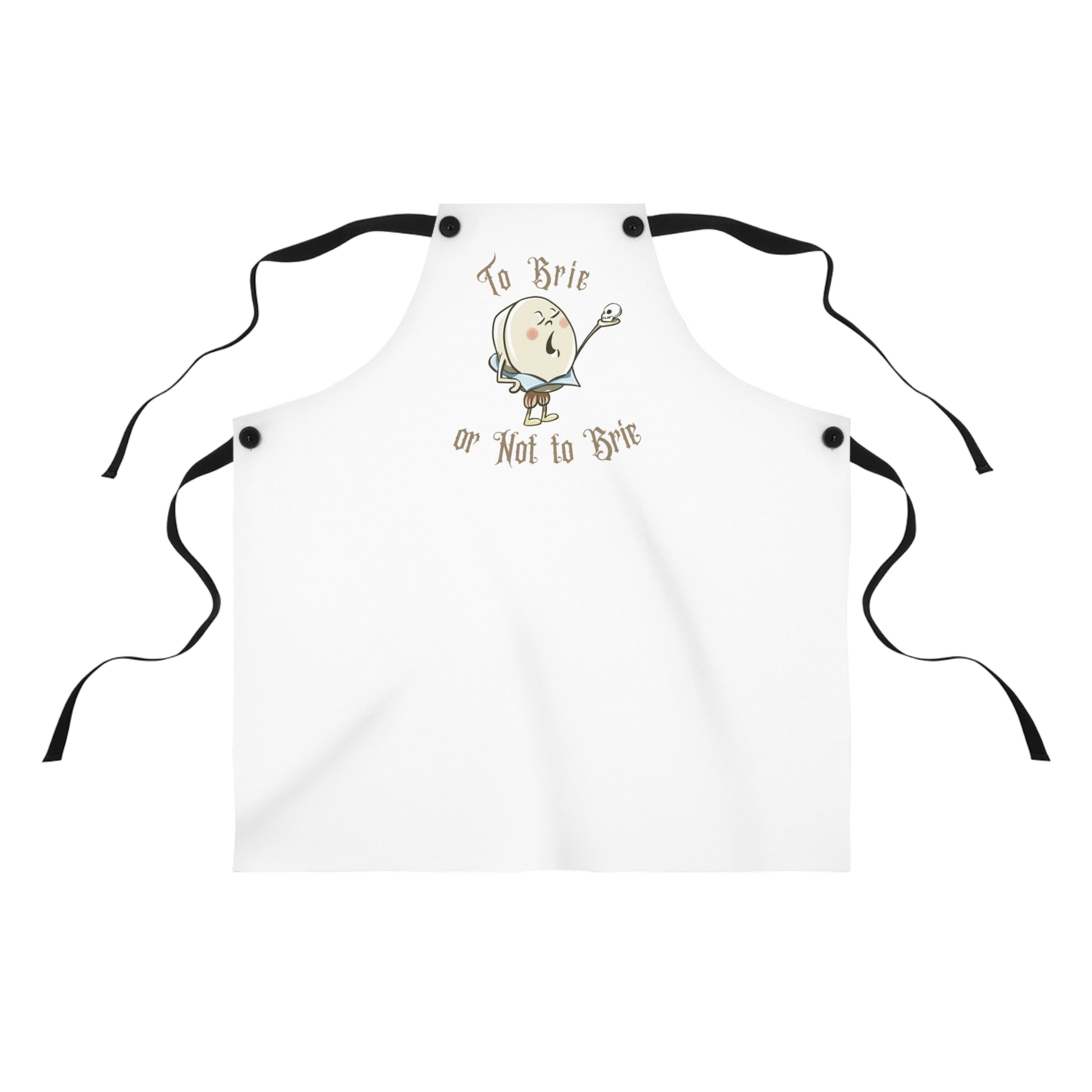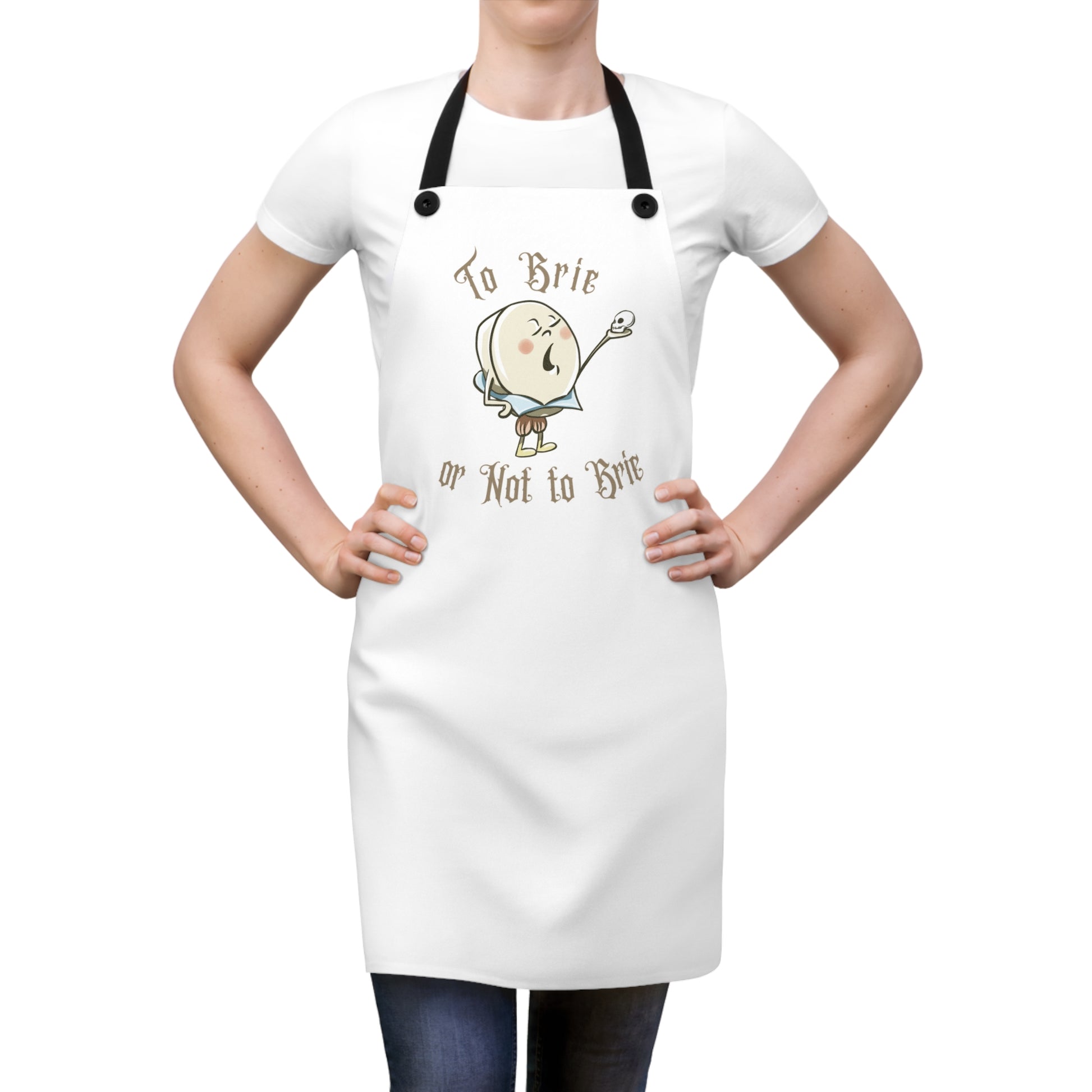A fun and functional apron perfect for hosting parties or enjoying snacks at home. The one-sided print features a playful "To Brie or Not to Brie" design. This apron is relevant for home cooks, party hosts, and food enthusiasts, fitting into their everyday cooking and hosting routines. Perfect for occasions like game nights, movie marathons, and casual gatherings.