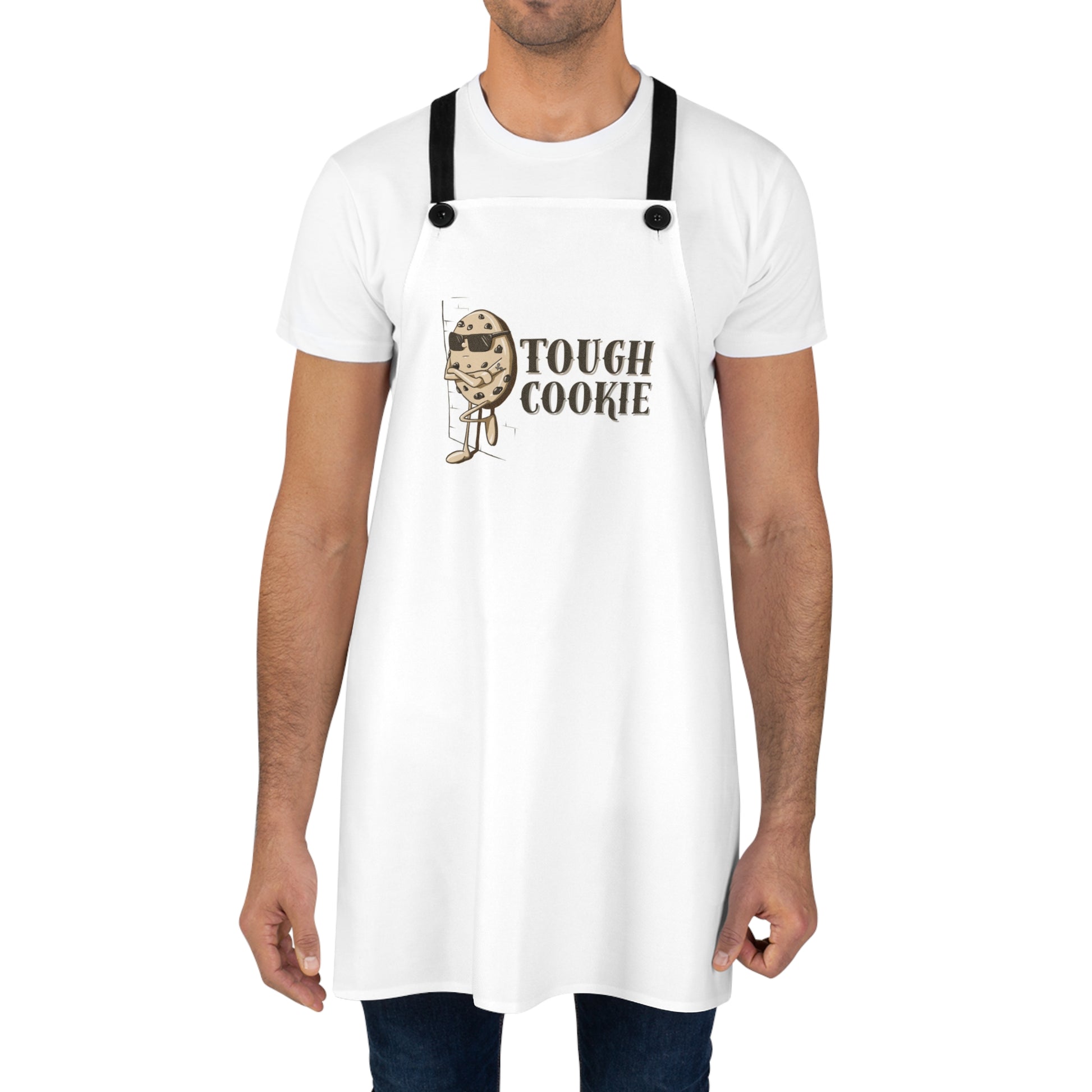 A fun and functional apron perfect for hosting parties or enjoying snacks at home. The one-sided print features a playful "Tough Cookie" design. This apron is relevant for home cooks, party hosts, and food enthusiasts, fitting into their everyday cooking and hosting routines. Perfect for occasions like game nights, movie marathons, and casual gatherings.